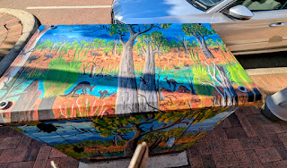 Black swans are smaller than their pristine white relatives, they are equally striking though. The black swan is the emblem of Western Australia, so was lovely to see this artistic expression of one of Western Australia's larger and stunning birds...